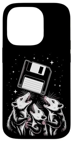 Opossum Worship Retro Floppy Disk Stars Night Coque pour iPhone 14 Pro