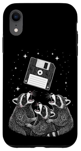 Funny Retro Raccoon Worship Old Floppy Disk Coque pour iPhone XR