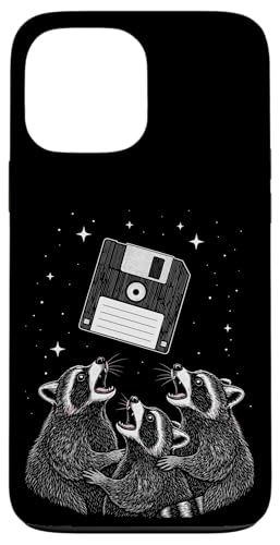 Funny Retro Raccoon Worship Old Floppy Disk Coque pour iPhone 13 Pro Max