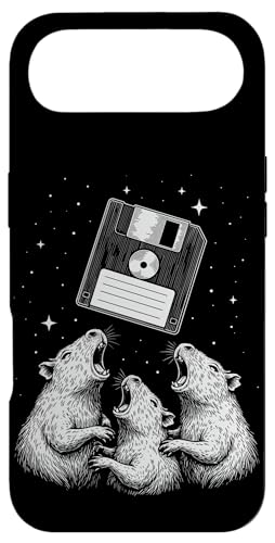 Vintage Space Raccoons Worship Floppy Disk Coque pour iPhone 17 Pro Max