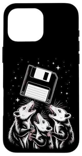Opossum Worship Retro Floppy Disk Stars Night Coque pour iPhone 16 Pro Max