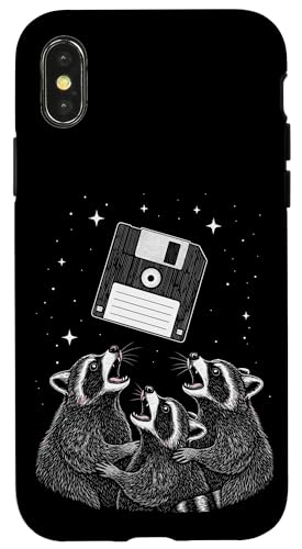 Funny Retro Raccoon Worship Old Floppy Disk Coque pour iPhone XS Max