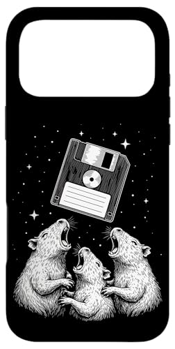 Vintage Space Raccoons Worship Floppy Disk Coque pour iPhone 16 Pro