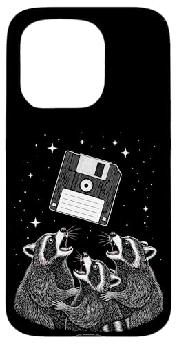 Funny Retro Raccoon Worship Old Floppy Disk Coque pour iPhone 15 Pro