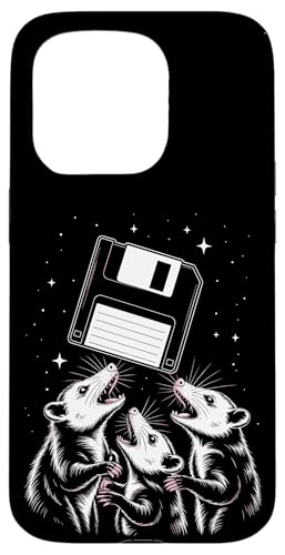 Opossum Worship Retro Floppy Disk Stars Night Coque pour iPhone 15 Pro