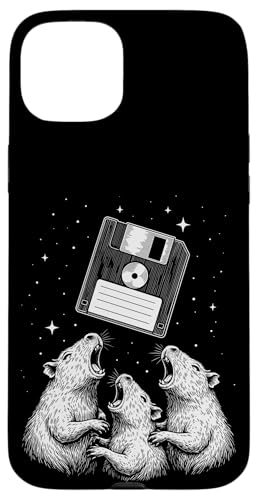 Vintage Space Raccoons Worship Floppy Disk Coque pour iPhone 15 Plus