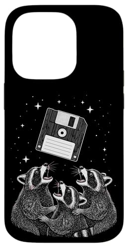 Funny Retro Raccoon Worship Old Floppy Disk Coque pour iPhone 14 Pro