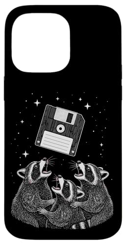 Funny Retro Raccoon Worship Old Floppy Disk Coque pour iPhone 14 Pro Max