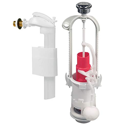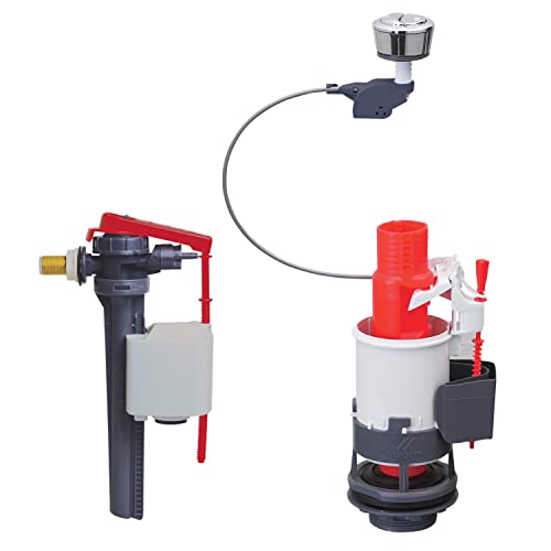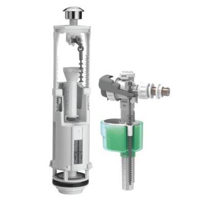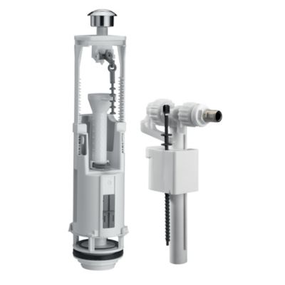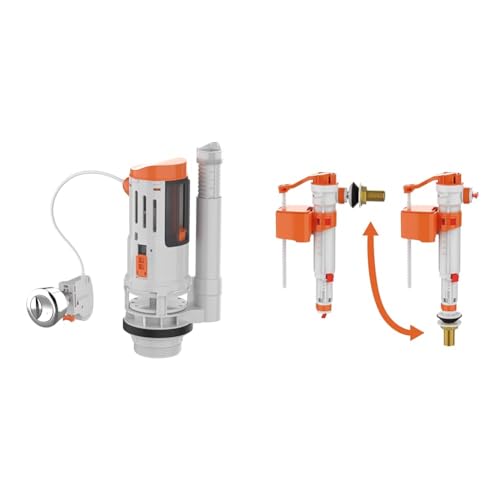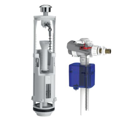 Wirquin 10723580 Mécanisme chasse d'eau wc double chasse avec bouton poussoir à câble MW2, gris & 10723588 Chasse d'eau wc robinet flotteur à alimentation basse Jollyfill, gris