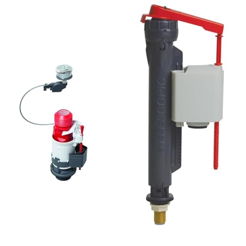 Wirquin 50719184 Mécanisme de chasse d'eau pour WC suspendu, rouge et blanc & 10723581 Chasse d'eau robinet flotteur à alimentation latérale embout laiton Jollyfill, gris