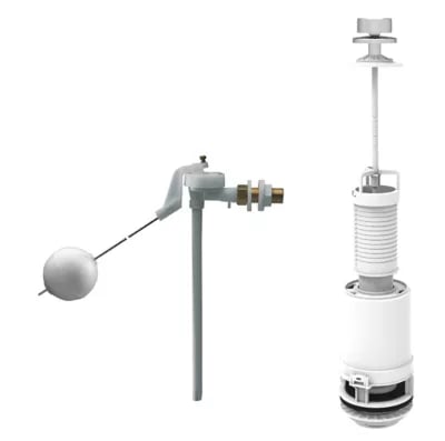 Chasse d'eau + robinet flotteur à ouverture différé Flomasta, double bouton poussoir + câble