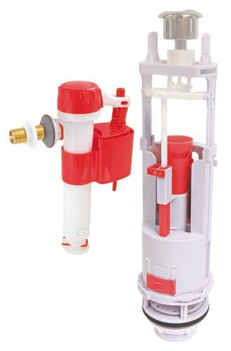 Wirquin 10724351 Chasse d'eau wc complète mécanisme wc double chasse MW2 & robinet flotteur à alimentation latérale F89, blanc et rouge