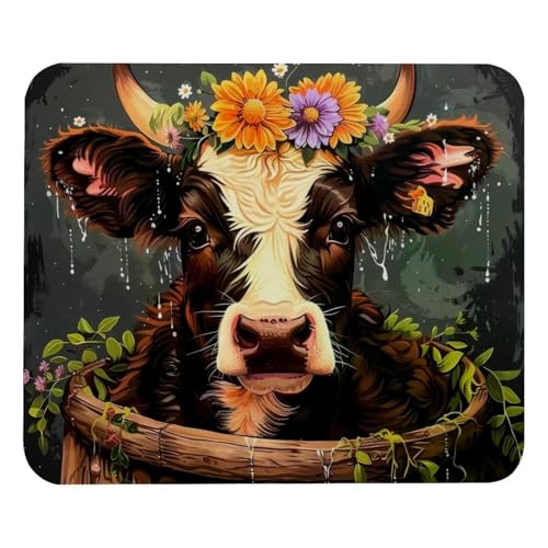 Tapis De Souris Calf Cow with Flowers Wreath Tapis Souris Imperméable sous-Main Résistant Aux Eclaboussures Accessoires De Jeu pour Ordinateur Portable Bureau Gaming M