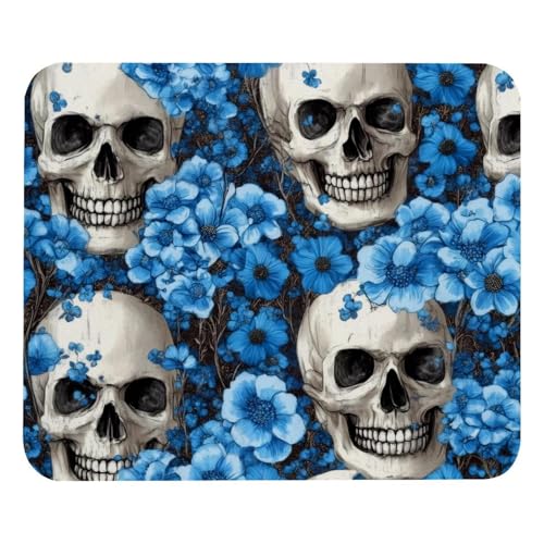Tapis De Souris Skulls and Blue Flowers Accessoires De Jeu Antidérapante sous-Main Imperméable Tapis Souris pour Travail Ordinateur Portable Gaming S