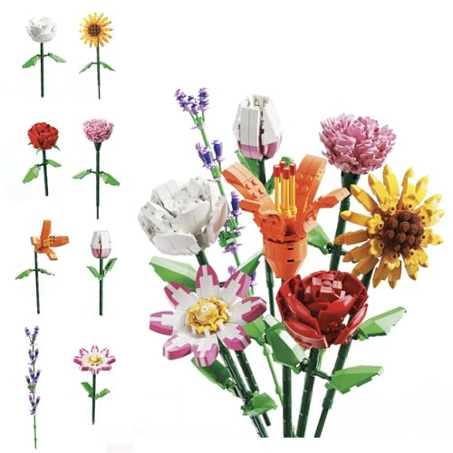 Flowers - Jeu de Construction Florale 3D, 63 à 114 pièces, 8 modèles Assortis (Tournesol, Rose, Tulipe, Lavande, etc.), Jeu créatif pour Les Enfants dès 6 Ans.