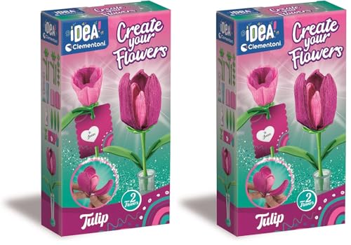 Clementoni Idea - Create Your Flowers, Kit créatif pour composer des fleurs, enfants 8 ans avec 2 tulipes en papier à assembler et personnaliser, idée cadeau de jeu Made in Italy, Langue italienne