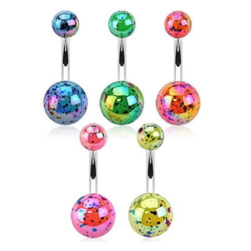 Lot 5 Piercings Nombril NALA Ventre Boule Perle Eclats de Peinture Fluo Bijoux Acier Chirurgical Inoxydable Anti Allergique Banane Barbell LOVEPIERCING