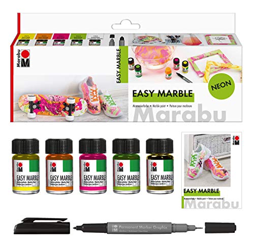 Marabu Kit de démarrage pour peinture marbrée Fluo 15 ml
