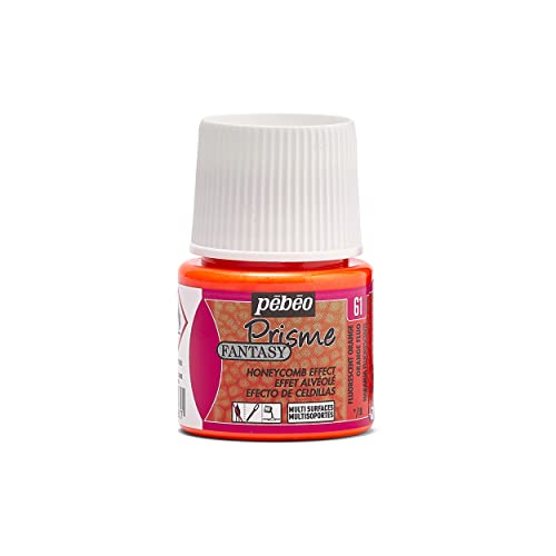 Pébéo – Fantasy Prisme Orange fluo – Peinture Orange fluo Effet Alvéolé – Rendu fluo – Peinture Multisupport - 45 ml
