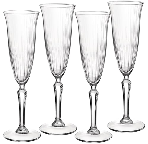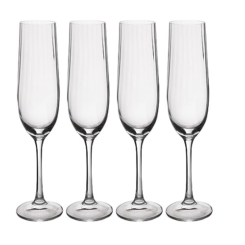 Mikasa Treviso Verres à flûte en cristal, 190ml, lot de 4 sans plomb, flûtes à champagne avec effet ondulé pour les célébrations