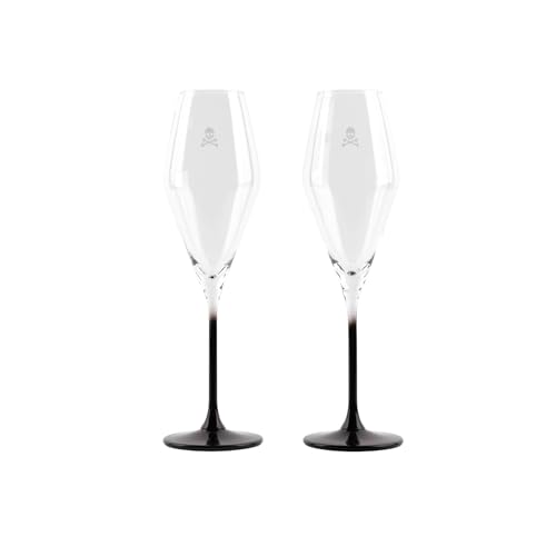 Scalpers Home | Lot de 2 flûtes à champagne | Capacité 182 ml | Motif tête de mort de Pied de couleur noire | Verres fabriqués en verre