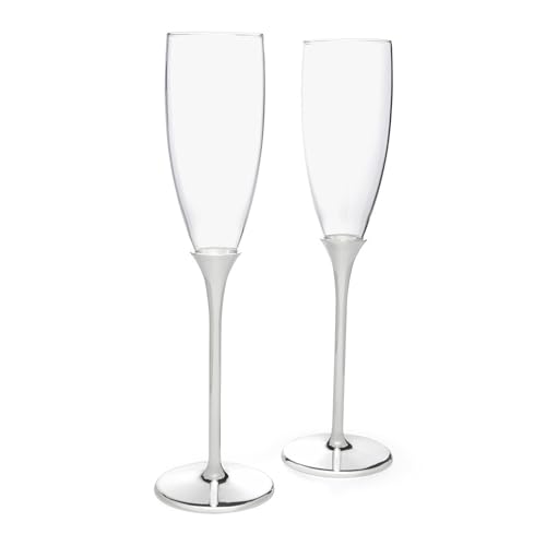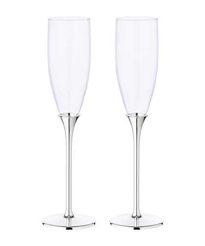 EDZARD Lot de 2 flûtes à champagne Victoria (hauteur 27 cm) en verre, pied argenté élégant, protégé contre le ternissement
