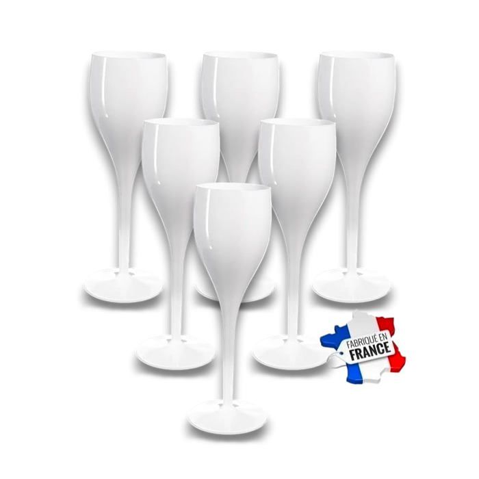 Lot de 6 Flutes à Champagne couleur Blanc 12cl - Verre Incassable en SMMA (équivalent TRITAN) MADE IN FRANCEBlanc