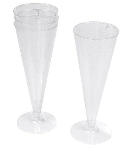 Homéa, Set de 6 Flutes à Champagne en Plastique Réutilisable 12Cl Paillete Argent
