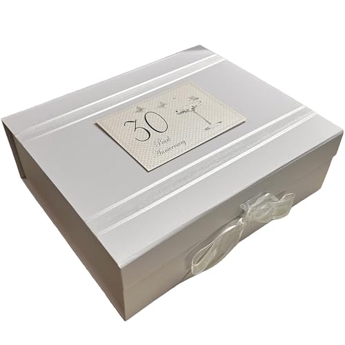 WHITE COTTON CARDS Grande boîte Souvenir 30th Noces de Perle Flûtes à Champagne 27,2 x 32 x 11 cm, Blanc