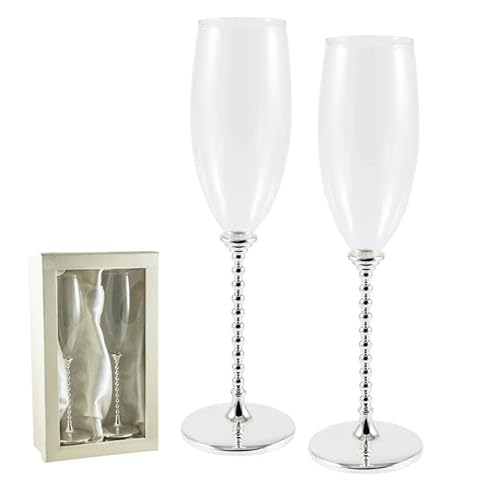 DRW Lot de 2 flûtes à champagne avec perles Ø5 x 25 cm
