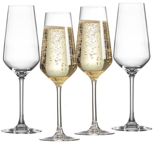 Viski Lot de 4 flûtes à champagne en cristal sans plomb étincelant, fabrication européenne, transparent (10103)