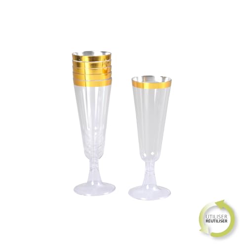 Homéa, Set de 6 Flutes à Champagne en Plastique Réutilisable 15Cl Lisere Or