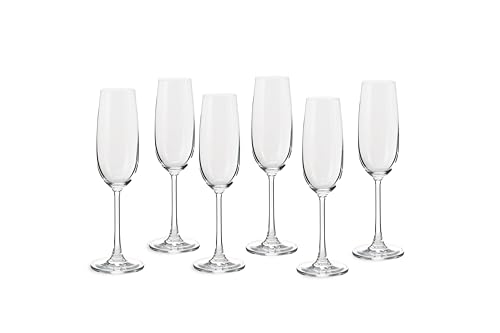 ECHTWERK Lot de 6 flûtes à champagne, 210 ml - Flûtes à champagne, coupes robustes en cristal à pied allongé, ouverture étroite et large pied, design intemporel, 22,9 x 7 cm