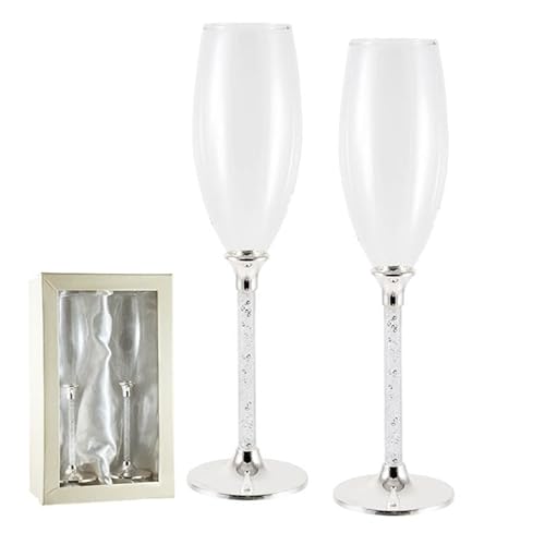 DRW Lot de 2 flûtes à champagne avec cristaux Ø5 x 25 cm