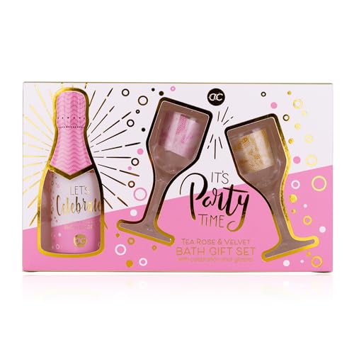 Accentra Coffret cadeau LET'S CELEBRATE pour femme dans une belle boîte cadeau, gel douche 150 ml, 2 verres à shot en forme de flûtes à champagne (2,5 cl chacun), kit d'entretien pour femmes et filles