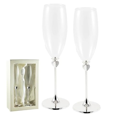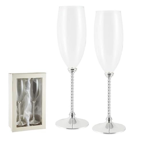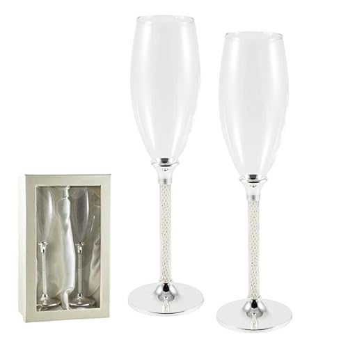 LEMCC Lot de 2 Verres à Champagne de Mariage, Flûtes à Champagne de Mariage pour Les Mariés, Gobelet à Vin de Mariage Transparent, Verres à Grillage élégants pour Fête d'anniversaire (A)
