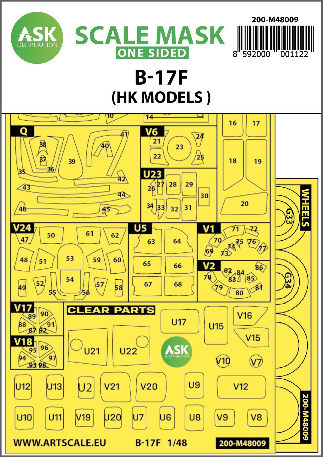 ASK ART SCALE KIT M48009 MASK B-17F FLYING FORTRESS OUTSIDE FOR HK MODELS 1/48