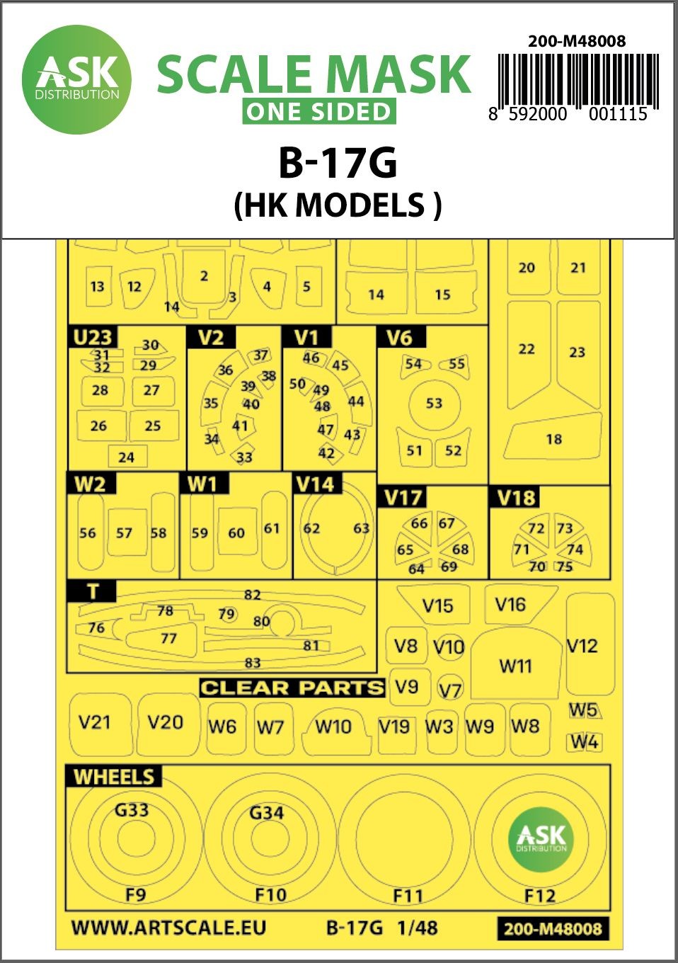 ASK ART SCALE KIT M48008 MASK B-17G FLYING FORTRESS OUTSIDE HK MODELS 1/48