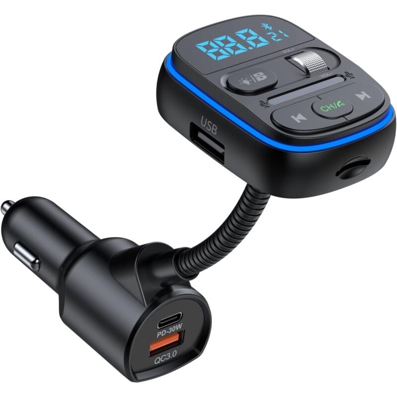 Transmetteur fm Bluetooth 5.3 - Charge Rapide QC3.0 PD18W usb c - Appels Mains Libres - Support Assistant Siri et Google -