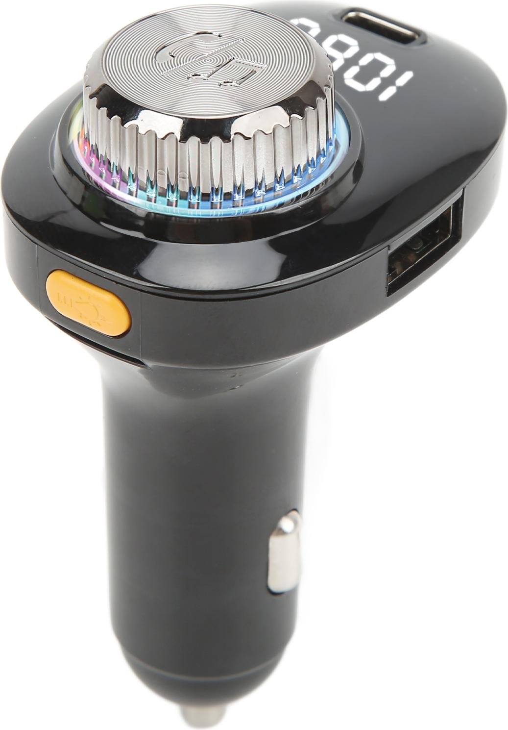 QUMOX Bluetooth 5.3 FM Transmitter Car Charger, PD30W USB-C + QC3.0 Fast Charging, 7-Color Ambient Light, Hands-Free Calling, Dual USB Ports, Universal 12-24V Car Compatibility