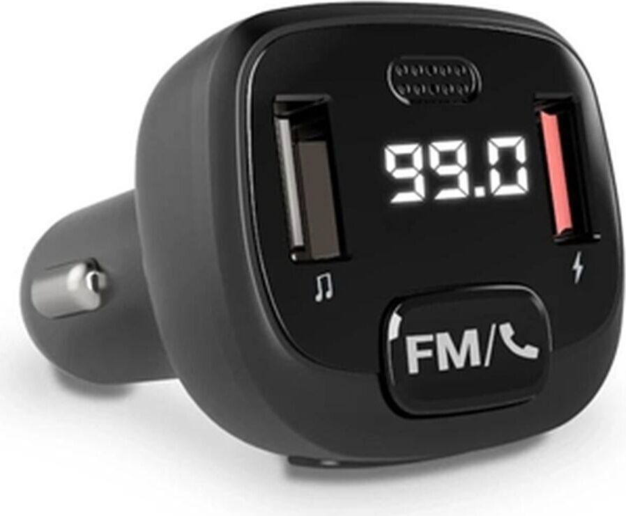 3-In-1 Bluetooth Fm Transmitter, Built-In Hands-Free Kit, Two Usb-A Max Ports And One Usb-C Port - Black