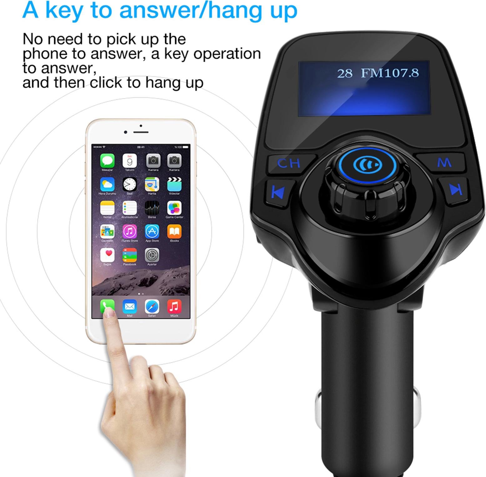 EuAcesry Bluetooth Voiture Transmetteur FM, Allume Cigare Charge Rapide, Adaptateur Radio Lecteur de MP3, Kit Emetteur 4.8A USB, Appels Mains Libres, Support USB/Carte TF, Musique Accessoire Voiture