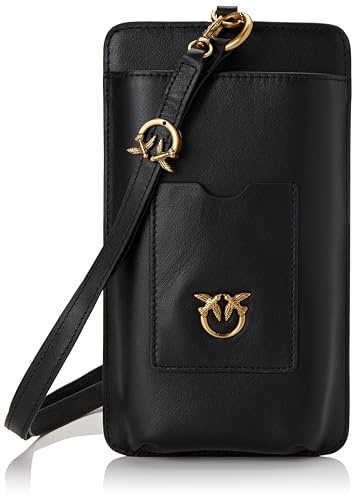 Pinko Phone Folder Veau Souple, Accessoire de Voyage -Cache-Cou Femme, Z99q_Noir-Antique Gold, U