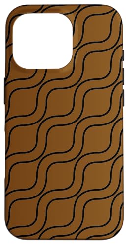 Vagues Noires rayées ondulées sur Fond Marron Coque pour iPhone 16 Pro