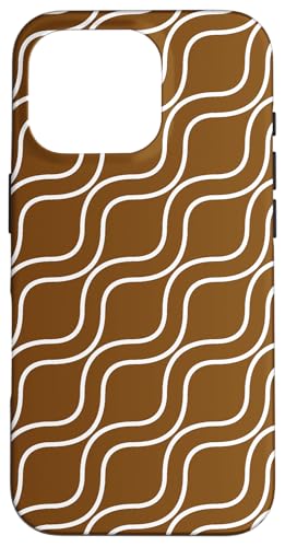 Vagues Blanches rayées ondulées sur Fond Marron Coque pour iPhone 16 Pro