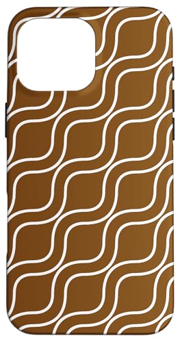 Vagues Blanches rayées ondulées sur Fond Marron Coque pour iPhone 16 Pro Max