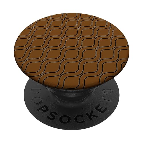 Vagues Noires rayées ondulées sur Fond Marron PopSockets PopGrip Adhésif