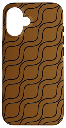 Vagues Noires rayées ondulées sur Fond Marron Coque pour iPhone 16
