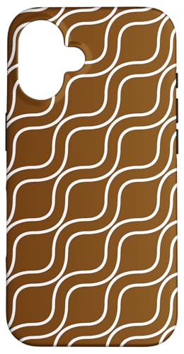 Vagues Blanches rayées ondulées sur Fond Marron Coque pour iPhone 16