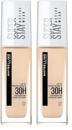 Maybelline New-York - Fond de Teint Liquide Longue Tenue, Sans Transfert, Haute Couvrance - Superstay Active Wear 30h - Teinte : Porcelaine (02) - Contenance : 30 ml (Lot de 2)